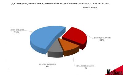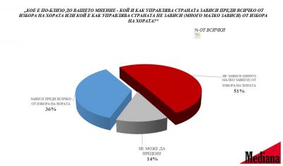 Изследването показва подчертан скептицизъм и недоверие към основата на демокрацията – изборите! Доминира усещането, че изборите са „залъгалка” за избирателите, а това кой и как ще управлява се решава от други сили вън от изборния процес. Това предопределя както търсенето на алтернативни политически формации, така и ниска избирателна активност. Избирателите са хванати в своеобразен психологически капан. Все повече от тях са убедени, че от изборите нищо не зависи … и не гласуват. В резултат, гласуват само твърдите агитки (и купените избиратели), с което потвърждават вече направения извод – „от изборите нищо не зависи”. На тези избори можем да очакваме отново ниска изборна активност, като пред урните ще застанат между 2.5 – 2.7 млн. избиратели.