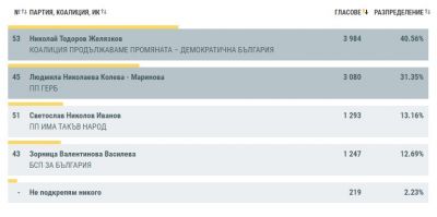 В район "Приморски" с най-голяма подкрепа е Николай Желязков - 3984 гласа (40,56%)