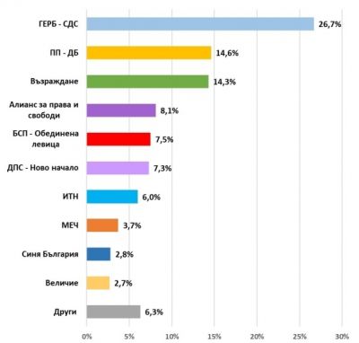 ГЕРБ без съмнение ще победи в предстоящата изборна надпревара. От изследването е видно, че няма обществена група или прослойка, в която ГЕРБ да не получава първи резултат.