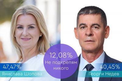 Янислава Шопова от "Продължаваме промяната - Демократична България" е получила 47,47% подкрепа или 9117 действителни гласа, а нейният опонент от ГЕРБ Героги Недев - 40,45% или 7769 действителни гласа. Опцията "Не подкрепям никого" са избрали 2321 души или 12,08% от действителните гласове в района.