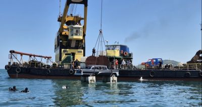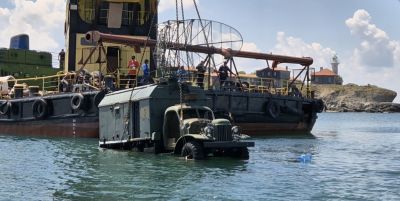 Първите експонати, които са част от парка, бяха потопени вчера на дъното на морето от доброволци на сдружението с помощта на плаващ кран „Антей“. Това са автомобилите ГАЗ-13, известен повече като „Чайка“, и радио релейна станция върху шаси ЗИЛ 157.