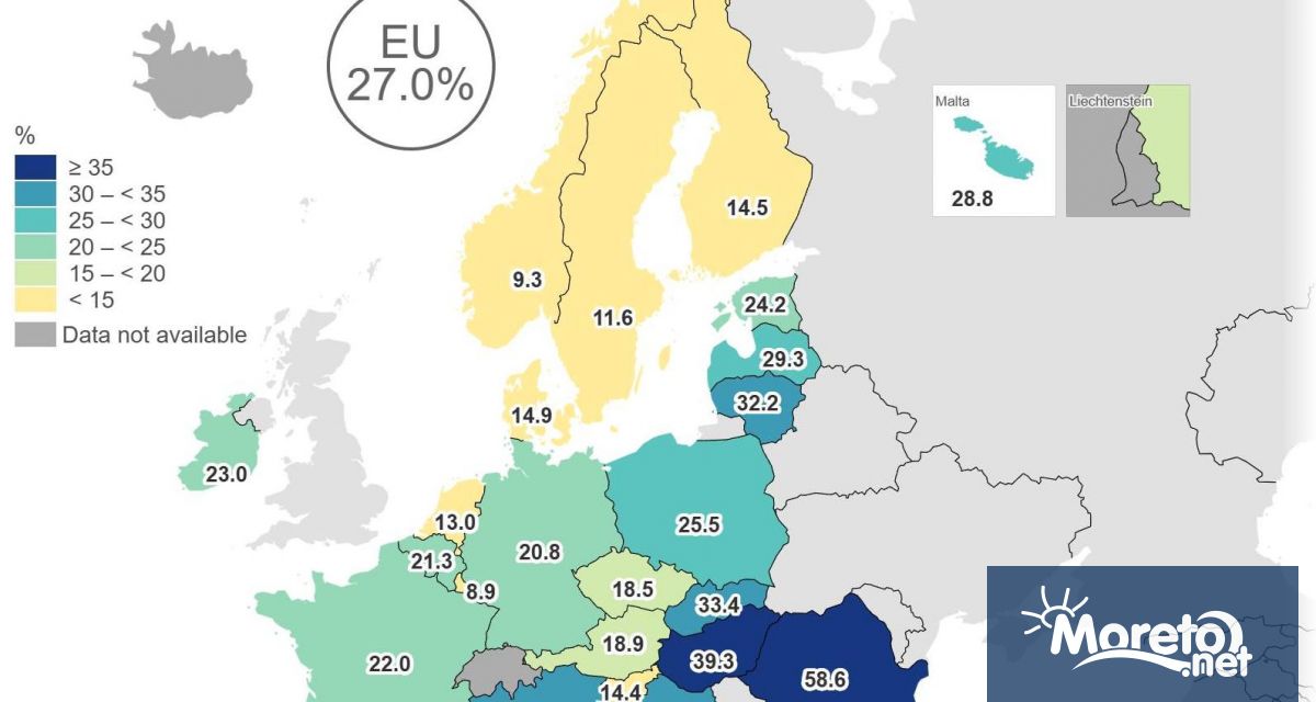 За сравнение, в другия край на класацията са Люксембург (8,9%), Швеция (11,6%) и Нидерландия (13%).