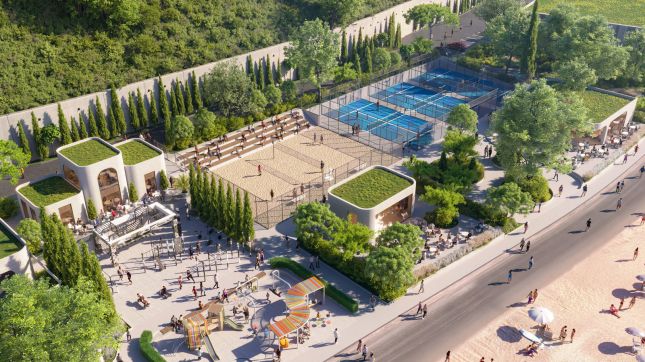 В проекта са включени вътрешни алеи с пейки и дървета, пространства с водни огледала и фонтани, детски площадки, игрища за волейбол и падел, както и открити фитнес зони.