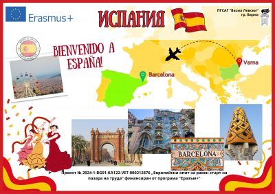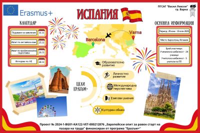 За поредна учебна година ученици от ПГСАГ „Васил Левски“ – гр. Варна ще вземат участие в Проект 2024-1-BG01-KA122-VET-000212876 „Европейски опит за равен старт на пазара на труда”, по програма Еразъм+. Ученици и учители от гимназията ще участват в образователна мобилност - град Барселона - Испания, от 27.06.2025г. до 12.07.2025г.
