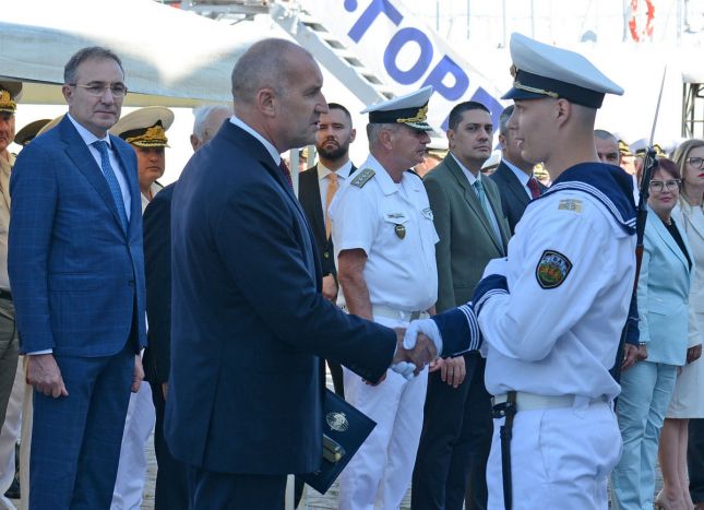 „Дръжте здраво щурвала на вашия живот и помнете, че тук, на родния бряг, винаги ще ви очакват с обич и любов“ – с тези думи държавният глава се обърна към випускниците. В приветствието си към младите офицери Румен Радев посочи, че връчените им пагони са отговорност и мисия, посветена на гарантирането на сигурността и суверенитета на Родината. Президентът допълни, че в контекста на увеличаващото се стратегическо значение на Черно море, където все повече се преплитат политически и икономически интереси, расте и изискването към Военноморския флот да отстоява нашия морски суверенитет, интереси и традиции като морска държава.