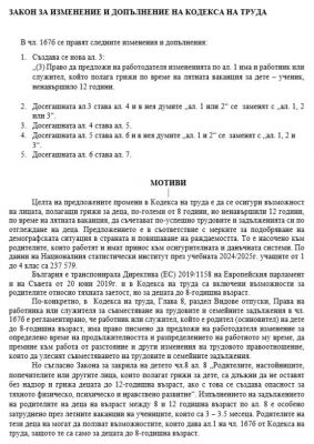 Бившият социален министър Деница Сачева обяви, че в началото на септември ще внесе законодателни промени в Кодекса на труда, които да улеснят родителите на деца от 8 до 12 години по време на лятната ваканция.