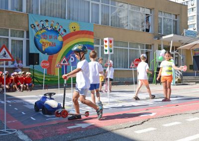 Движението по пътищата, представено на най-малките участници в него под формата на забавна игра – така от екипа на Детска градина №14 „Дружба“ във Варна обучават своите възпитаници в основните правила за безопасност. Днес в двора на градината бе проведен забавен открит урок, в който всеки имаше своята различна роля – на водач на автомобил, на пешеходец, на управляващ тротинетка или на полицай, но всички спазваха едни и същи правила.