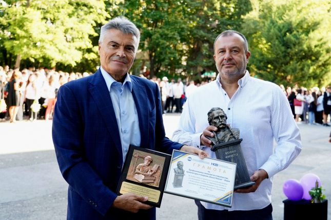 За ползите от това браншът да влезе в школата и учениците да се запознаят с работата на терен говори и Светослав Жеков, който е член на Областния съвет на КСБ. Той участва в тържествената церемония по откриване на учебната година в професионалната гимназия и връчването на бюста на Колю Фичето, както и почетния плакет.