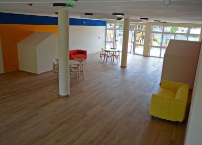 Стаите за занимания и почивка на децата са изпълнени според нормативните изисквания за площ, височина и осветеност. Обзавеждането е със съвременен дизайн, произведено от качествени материали и разпределено функционално, така че да осигури уютна и безопасна среда за децата и персонала на детската градина, лесно за обслужване и удобно за работа, близко до домашната среда. Всяка от детските групи разполага със собствено приемно помещение с гардероби и санитарен възел.