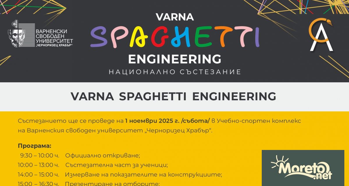 На 1 ноември – Деня на народните будители, в Учебно-спортния комплекс на Варненския свободен университет „Черноризец Храбър“ ще се проведе единадесетото издание на националното състезание за креативни умения „Varna Spaghetti Engineering“.