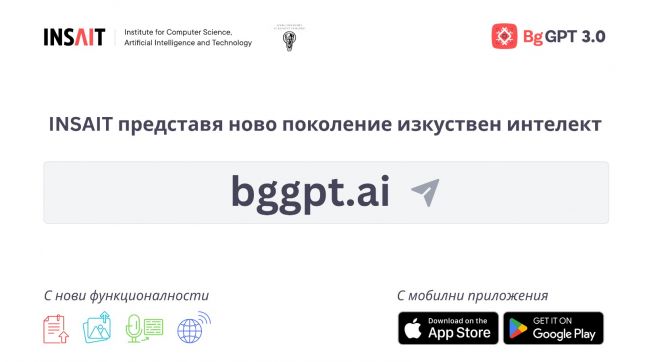 Третата версия на BgGPT, българският чат с изкуствен интелект, вече разпознава изображения и глас, обработва документи и използва търсене в интернет. Това стана ясно по време на публично представяне на новите възможности на българския изкуствен интелект, в което участие взеха основателят и научен директор на Института за компютърни науки, изкуствен интелект и технологии (INSAIT) проф. Мартин Вечев и инж. Борислав Петров, изпълнителен директор на INSAIT.