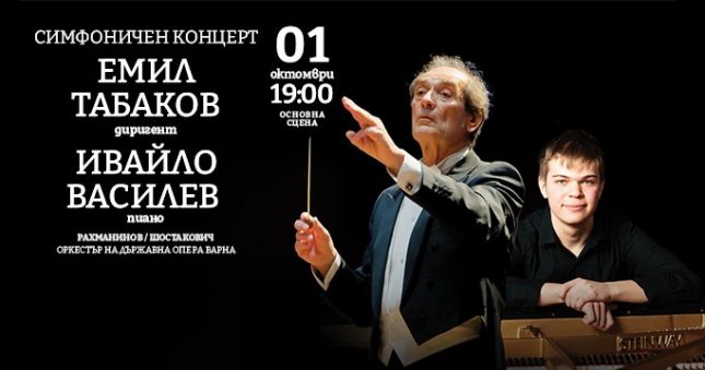 Двама виртуози от две поколения в един необикновен концерт ще се срещнат тази вечер, 1 октомври - Световния ден на музиката, за да открият новия 79-и сезон на Държавна опера Варна. Доайенът на диригентското изкуство маестро Емил Табаков и младият пианист Ивайло Василев, наричан „малкият Моцарт“, заедно с оркестъра на Варненската опера ще поднесат емблематични творби на Рахманинов и Шостакович.