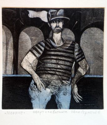 В изложбата са включени и няколко графики от цикъл с фигурални композиции, които показват богатството на графичните техники, любими на автора.