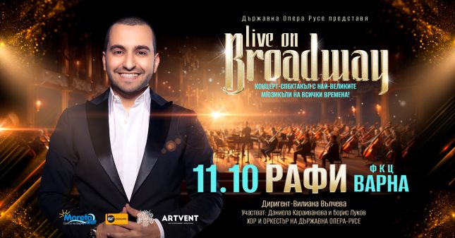 Музикалната магия на Бродуей пристига във Варна тази вечер. От 19:00 часа в зала 1 на Фестивален и конгресен център ще се състои впечатляващият концерт-спектакъл „Live on Broadway“ на Държавна опера Русе...
