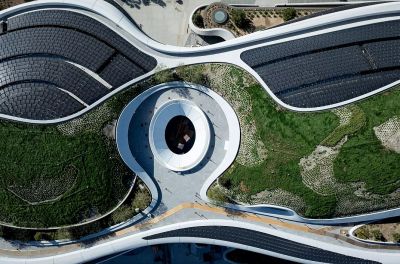 Проектиран от Ма Янсонг (MAD Architects) със Stantec като изпълнителен архитект, музеят е пететажна скулптурна сграда с площ около 300 000 кв. фута. Външната ѝ част е покрита с над 1500 извити панели от полимер, подсилен с фибростъкло, всеки дигитално моделиран и ръчно завършен, които създават биоморфната, вълнообразна повърхност. Окулус на покрива подчертава скулптурната връзка с небето, а формата на сградата символизира плаващ балдахин – метафора за подслон, въображение и събиране.