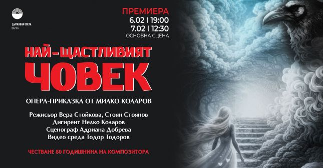 Първата премиера за годината в Държавна опера Варна, на 6 февруари, е на операта-приказка „Най-щастливият човек“. С постановката се отбелязва 80-годишният юбилей на Милко Коларов, автор на творбата. Професор...