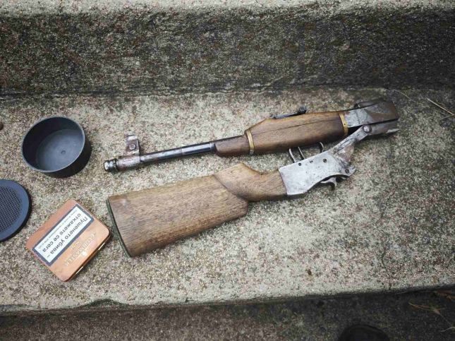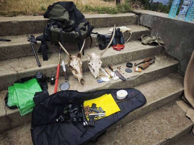 В хижа „Соколна“ са установени едно дългоцевно ловно оръжие – самоделка, 21 броя ловни патрони за него, едно късоцевно огнестрелно оръжие, един газов пистолет, два броя въдици, стръв за риболов и два трофея от благороден елен. В раницата на нарушителя са открити два ножа, боеприпаси за ловно оръжие и големи найлонови пликове.