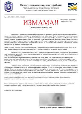 Главна дирекция „Национална полиция“ предупреждава, че всички подобни съобщения са измама и призовава гражданите да подлагат на съмнение автентичността на всякакви електронни писма, получени онлайн от името на държавни институции, служебни лица или известни личности.