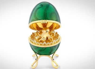 Яйцето е вдъхновено от филма от 1983 г. „Октопуси“ с Роджър Мур и е едно от само 50 произведени. Висулката има красива решетъчна рамка от 18-каратово злато, деликатно инкрустирана със сини сапфири и бели диаманти във флорален дизайн.