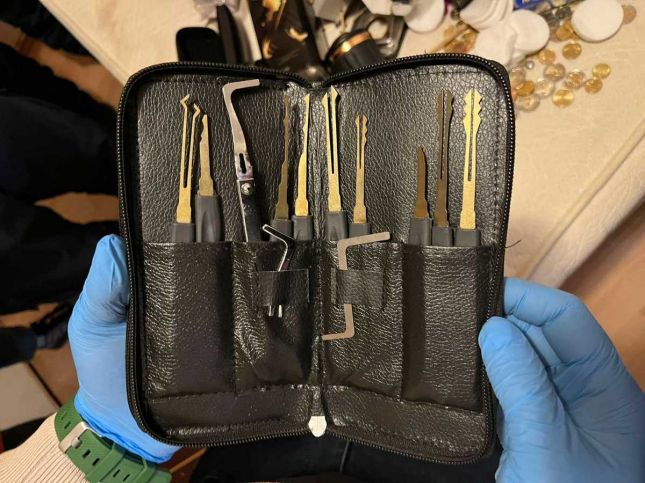 Освен това полицаите са намерили приспособления за отключване и взлом на секретни патронници за жилища и леки автомобили, както и подправени полицейски дрехи.