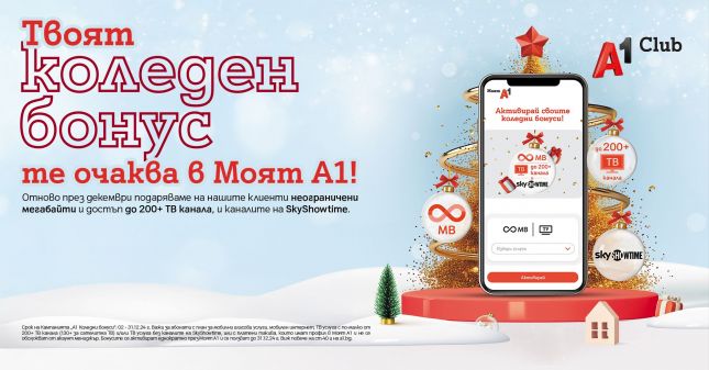 През декември А1 благодари на своите клиенти, като им предоставя специални коледни бонуси по случай празниците, които могат да активират през Моят А1. Абонатите на мобилна гласова услуга или мобилен интернет от телекома могат да се възползват от неограничени MB на максимална скорост, а ползвателите на телевизионни услуги – от достъп до над 200 телевизионни канала и двата ТВ канала на SkyShowtime.