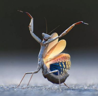Испанският фотограф Хосе Мигел Галего Молина спечели наградата в категорията „Насекоми“ с хумористичния си кадър, озаглавен „Mantis Flamenca“.