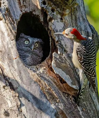На метри от скривалището старо отсечено дърво има дупка (старо гнездо на кълвач), а тук катериците (преди две години имаше 4 екземпляра) понякога идват от любопитство да разгледат старото кухо дърво.