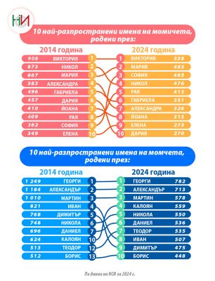 Виктория и Георги са най-предпочитаните имена за новородените през 2024 г. в страната.
