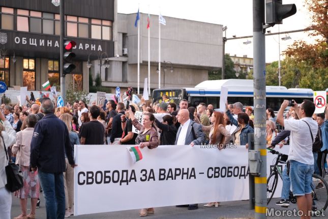 С викове „Свобода“ и "Искаме си кмета" бе блокирано кръстовището пред сградата на Община Варна. Чуват се скандирания "Не на диктатурата". Издигнати са плакати „Свобода за политическите затворници,„Освободете политическите затворници“, „Благо е в ареста, защото е кмет“ и „Откога съдът е прокуратура?“. “.