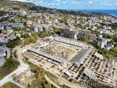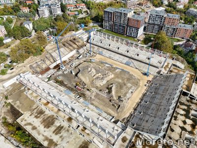 Към днешна дата, въпреки периодичните застои, строителни дейности все пак текат. Дронът на Moreto.net проследи случващото се от птичи поглед.
