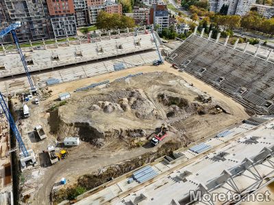 Към днешна дата, въпреки периодичните застои, строителни дейности все пак текат. Дронът на Moreto.net проследи случващото се от птичи поглед.