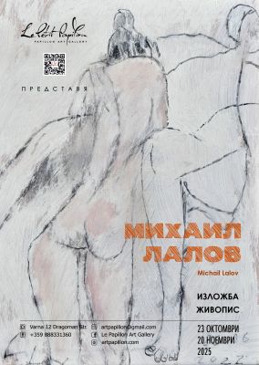 Арт галерия Le Papillon представя изложбата живопис на Михаил Лалов, която може да бъде разгледана от 23 октомври до 20 ноември 2025 г. в изложбената зала на галерията в гр. Варна, ул. Драгоман 12.