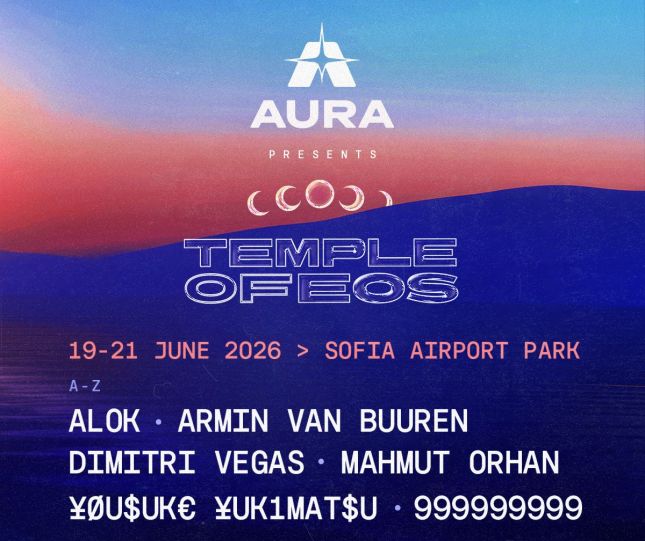 През юни 2026 София ще се превърне в пресечна точка между митология, звук и визуална магия. Второто издание на AURA FESTIVAL представя тематичния свят Temple of Eos – тридневно музикално приключение, в което всяка вечер е самостоятелен ритуал. От 19 до 21 юни новата локация на фестивала – Sofia Airport Park – ще бъде трансформирана в жив, дишащ свят, където музика, сценични конструкции, инсталации и артисти от световна класа се сливат в общо изживяване, което ще продължи до ранни зори. Еднодневни, тридневни, ВИП и младежки билети са вече в продажба в мрежата на Ticketstation.