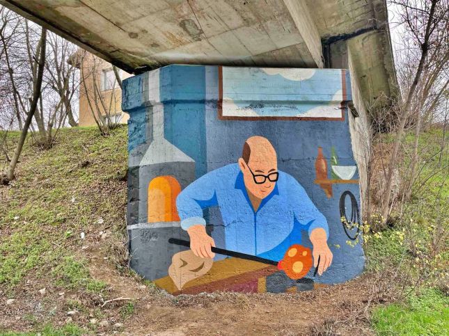 Графитите отдават почит и на индустриалната история на Белослав. Градът е известен като един от центровете на стъкларското производство в България, а първият стъкларски завод е открит тук през 1893 г. Белославското стъкло, ръчно духано и с отличителен блясък, е намерило признание както в страната, така и извън нея. Художествените изображения включват традиционни пещи и символични форми, свързани със стъкларския занаят.