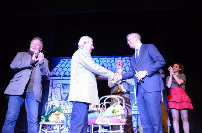Позволете ми първо да ви поздравя по повод Международния ден на театъра – 27 март – ден, в който отдаваме заслужено признание на силата на сценичното изкуство, което ни събира, вълнува и кара да се замисляме. За мен е чест да изразя искрената си благодарност и дълбоко уважение към големия български драматург Стефан Цанев, който е сред нас тази вечер, каза кметът на Варна Благомир Коцев. Той благодари и на актьорите Ели Скорчева и Димитър Маринов за преживяването по време на спектакъла и допълни, че се надява децата ни да остават тук в родината, за да не изпитваме тези чувства, които изпитват героите в пиесата.