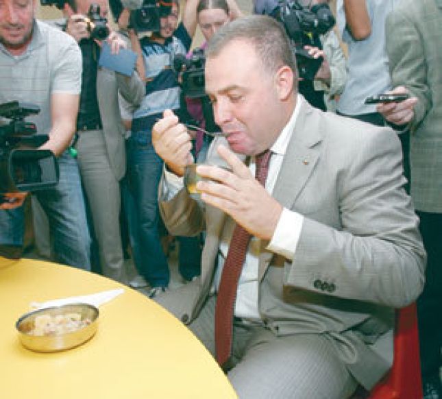 Вместо торта донесохме грозде". Това заяви земеделският министър Мирослав Найденов вчера в столичната забавачка "Веселина". Той подари 240 кг плодове и зеленчуци на детската градина, осигурени от държавната програма "Училищен плод". Земеделският министър заедно с кметицата на София Йорданка Фандъкова и главния държавен здравен инспектор Тенчо Тенев отидоха в градината, за да видят какво обядват децата и как се приемат и готвят продуктите. За да се увери, лично Мирослав Найденов седна на малко червено столче и с лъжичка изкуса една порция спаначена супа от метално канче. Леко намръщен той коментира, че чорбата не му харесала много, тъй като в нея имало надробен хляб. След това земеделският министър съобщи, че 1551 детски заведения - градини, ясли и млечни кухни, са проверени за качеството на храната, която се предлага в тях. По време на ревизията са бракувани 140 кг месни продукти, 32 кг мляко и млечни произведения, както и 330 яйца. "Проблеми има повече в малките населени места, където снабдяването е само от едно място", обясни Найденов. Най-големи нарушения са открити в детска ясла в Благоевград, в забавачка в Смолянско и в детска кухня в Разград. Проверяващите са съставили 44 акта и са дали стотина предписания. "От 147 проверки в София има само 6 акта", съобщи пък Фандъкова. Тя похвали директорите на столичните забавачки, че се стараят да осигурят най-доброто за децата в рамките на делегираните бюджети. Найденов пък съобщи, че скоро нормативът за меню в детските заведения ще бъде променен спрямо съвременните условия. Работна група от Центъра за хигиена, НВМС и РИОКОЗ, които ще се обединят в Агенция по храните, ще подготвят изискванията за храната в яслите и забавачките. В тях ще има повече плодове и риба за сметка на сладките и каймата.