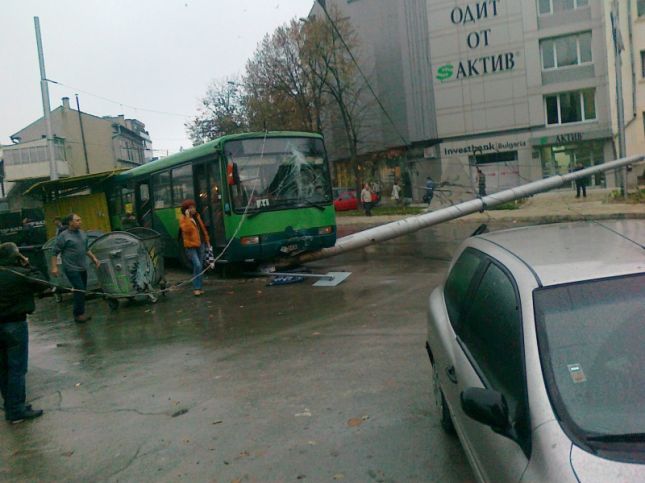 Автобус №41 се блъсна в електрически стълб днес сутринта. За радио „Фокус” – Варна дежурния от Бърза помощ заяви, че инцидента е станал по улица „Козлодуй” на завоя за жп. гарата. Автобусът не е успял да вземе завой и за да не се блъсне в движещия се насреща автобус се блъска в електрически стълб. При удара са пострадали четирима души – две жени едната от които 61 години, мъж на 65 години и дете на 7 години. Детето е с рана на главата без опасност за живота. Едната от жените е със счупване и съчетана травма, но без опасност за живота. Другите двама са с леки наранявания.