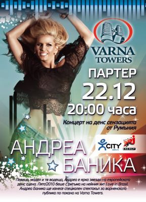 Румънската денс кралица Андера Баника пристига у нас на 22 декември по покана на Селект Мюзик Медиа и “Варна Тауърс”. Музикалната компания на рапърите организира голям Коледен концерт във “Варна Тауърс” същата вечер, звездата в който ще бъде Баника.