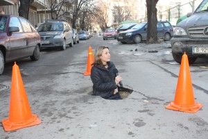 23:09ч. 28 Януари 2011 #6  Bull Абе тия дето се чудите колко е голяма ямата и колко е висока репортерката,защо не вземете да минете с колите си през дупката че да разберете!
