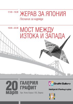 На 20 март от 17 до 18.30 часа 3inSpirit, Галерия Графит и сдружение ВИДЕОХОЛИКА ще ви дадат възможност да изразите своята съпричастност и да изпратите част от душата и надеждата си в Япония, защото там имат нужда от нея. В Страната на изгряващото слънце историята на малкото момиченце Садако Сасаки от Хирошима, болно от левкемия в следствие на радиационното облъчване, е легенда, която разказва, че ако човек направи 1000 хартиени жерава-оригами, ще му се сбъдне съкровено желание и той ще се радва на дълъг и щастлив живот. В този труден за Япония и японците момент, те не желаят финансова помощ, а единствено морална подкрепа чрез техния символ на надеждата. Вложете личното си послание за надежда във Вашия ЖЕРАВ ЗА ЯПОНИЯ! Сгънете или донесете един от 1000-та хартиени жерава-оригами, които ще бъдат направени в този ден. Те ще бъдат изпратени като жест на съпричастност от всички нас в град Сапоро, провинция Хокайдо, на неправителствената организация, работеща в областта на културата S-AIR http://www.s-air.org/. Серия от подобни акции се провеждат в София, Пловдив, Русе и Стара Загора.