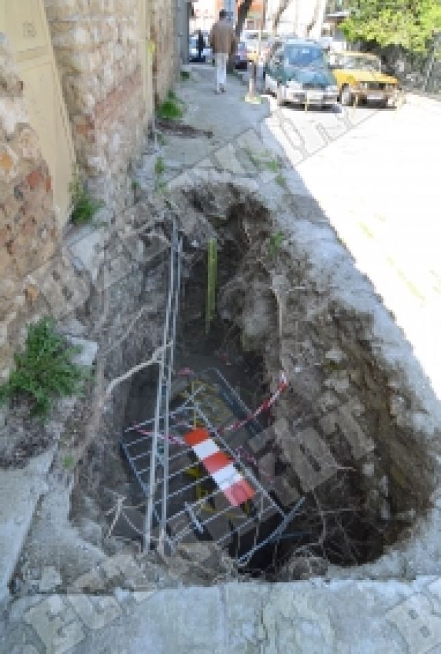 Преди два месеца автомобил пропадна във въпросната яма. Тогава собственикът на хлътналото превозно средство успял да я извади с помощта на приятели, които вдигнали на ръце колата и я върнали на асфалта. В момента улицата е затворена за движение. Живеещите там се оплакват, че срутване заплашва и оградите на къщите им, разказа директорът на Историческия музей във Варна Валентин Плетньов.
