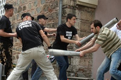 Протест на „Атака" срещу високоговорителите на джамията доведе до масово сбиване. По време на протеста около 50 мюсюлмани продължиха обедната си молитва на килими пред самата джамия. Това предизвика гнева на поддръжниците на „Атака", които прескочиха загражденията и протестът прерасна в бой с подръчни материали.
