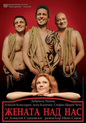 От днес до неделя театър "Българан" пуска билети с цени от 5.00 / 8.00 / 10.00 лв. за хитовата комедия от В. Красногоров "Жената над нас". Звездното трио Асен Блатечки, Алексей Кожухаров /Пълна лудница/ и Стефан Щерев /Шоуто на канала/ обещават 90 минути неподправен смях на 14 юли от 20.00 часа. Истинската пиеса, истинския спектакъл представят своя версия на живота –казва Слаповски-тази проста формула е своеобразен манифест – отказ от модерната документалност и същевременно отрицание на чистата измислица, игра заради самата игра.” Това е “ театър на въображението”, защото животът не съществува сам за себе си, той просто е нашата представа за него. Трима мъже,задържани от органите на реда, заедно трябва да отработят 15 дни поправителен труд в нова къща. Появата на Олга / Добриела Попова/ отключва техните фантазии , съмнения,спомени ...