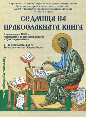 Станалата вече традиционна Седмица на православната книга ще се проведе от 5 до 12 септември във Варна, съобщиха организаторите. Тази година тя е под надслов "Възраждането на духовния живот на личността". Тя се провежда с благословението на Негово високопреосвещенство Варненският и Великопреславски митрополит Кирил.