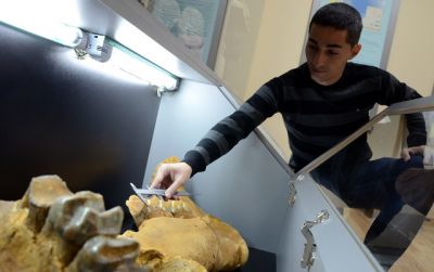Уредникът на варненския Природонаучен музей асистент Стоян Вергиев показва зъби от праисторически слон, намерени при разкопки край Силистра и Старо Оряхово.