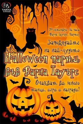 „Варна Тауърс” Ви кани на най-щурото „Хелоуин парти”! Очакват Ви много забавления, танци, игри и награди! Единствено във „Варна Тауърс” специално за Вас сме декорирали хелоуински кът, за да си направите истински страховити снимки за спомен! И това не е всичко! За да е истински празникът „Варна Тауърс” ще Ви покаже на живо и най-голямата тиква в България. Гигантският екземпляр пристига от Сливен и тежи повече от 61 килограма!
