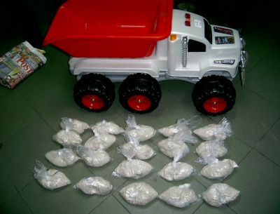 8,217 кг хероин задържаха митнически служители от МП Калотина.При проверка на автобус, пътуващ по редовна автобусна линия от Турция до Черна гора през България, на митничарите направила впечатление детска играчка – камионче. То било по-тежко от обичайното, а при внимателен оглед се видяло, че корпусът му е пробиван и след това залепен. Оказало се, че играчката съдържа найлонови пакети със светлобежово вещество. На въпрос чия е играчката, шофьорите на автобуса посочили един от 20-те пътника - 30-годишният сръбски гражданин А.Ц. Оказало се, че той пренася още една играчка – конче. В него също имало подобни пакети. Огледът и тестовете показали, че веществото, съдържащо се в общо 26-те пакета, е хероин. По цени за нуждите на съдопроизводството пратката се оценява на около 1 млн. лева. Пред митничарите А.Ц. обяснил, че играчките му дал непознат в Турция, а срещу 1000 евро заплащане той трябвало да ги пренесе до Сърбия.