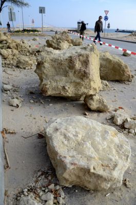 Паднали камъни затрупаха част от крайбрежната алея в морската градина