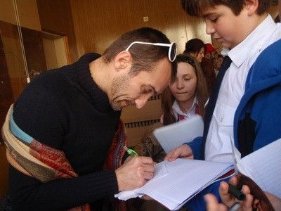 Актьорите от мюзикъла „Бремен” на Драматичен театър „Стоян Бъчваров” се срещнаха през седмицата с ученици от шести и седми клас на VIII СОУПЧЕ „А. С. Пушкин” и членовете на Клуб „Мелпомена”. Учениците посрещнаха с шумно одобрение, аплодисменти и карамфили гостите, които бяха приветствани от преподавателката Валя Райкова, под чието ръководство Клуб „Мелпомена” от години приобщава младите хора към света на театъра. Виолета Тончева, пиар на театъра, представи режисьора Стоян Радев Ге. К., хореографа Георги Goosh Енчев, ръководител на танцовата формация „The Center” и актьорите Владислав Виолинов, Веселина Михалкова, Пламен Димитров, Теодора Михайлова и Поли Недкова, които веднага бяха засипани с многобройни въпроси. Децата бяха гледали с внимание спектакъла и помнеха редица детайли от поведението на героите, станали им очевидно любими. Владислав Виолинов (Петелът) и Веселина Михалкова ( Котката) не трябваше дълго да бъдат подканяни, за да повторят някои от характерните реплики и движения на своите персонажи. Стоян Радев Ге. К. разказа за създаването на спектакъла, изграден по мюзикъла на Александър Владигеров „Веселите музиканти”, но с ново либрето и съвременна концепция, както и за удоволствието да работи точно с този екип. Георги Goosh Енчев похвали актьорите за двигателната култура и равностойното им участие, наред с младите танцьори от „The Center”, в нелеката, с елементи от Street Dance, но като цяло оригинална хореография, специално поставена за мюзикъла „Бремен”. Всички споделиха лични моменти от творческата си биография. Най-често задаваните въпроси се отнасяха до това, трудна ли е актьорската професия, какви качества са необходими, за да станеш актьор, как се преодоляват гафове на сцената, как актьорът усеща публиката и важна ли е нейната реакция. Впечатлен от интелигентността и любознателността на учениците, екипът на „Бремен” ги възнагради на свой ред с аплодисменти и обеща отново да дойде. В края на емоционалния разговор събирането на автографи от актьорите върху програми, флаери, тетрадки или отделни листчета се превърна в амбициозна надпревара, която отне почти толкова време, колкото трая самата среща.