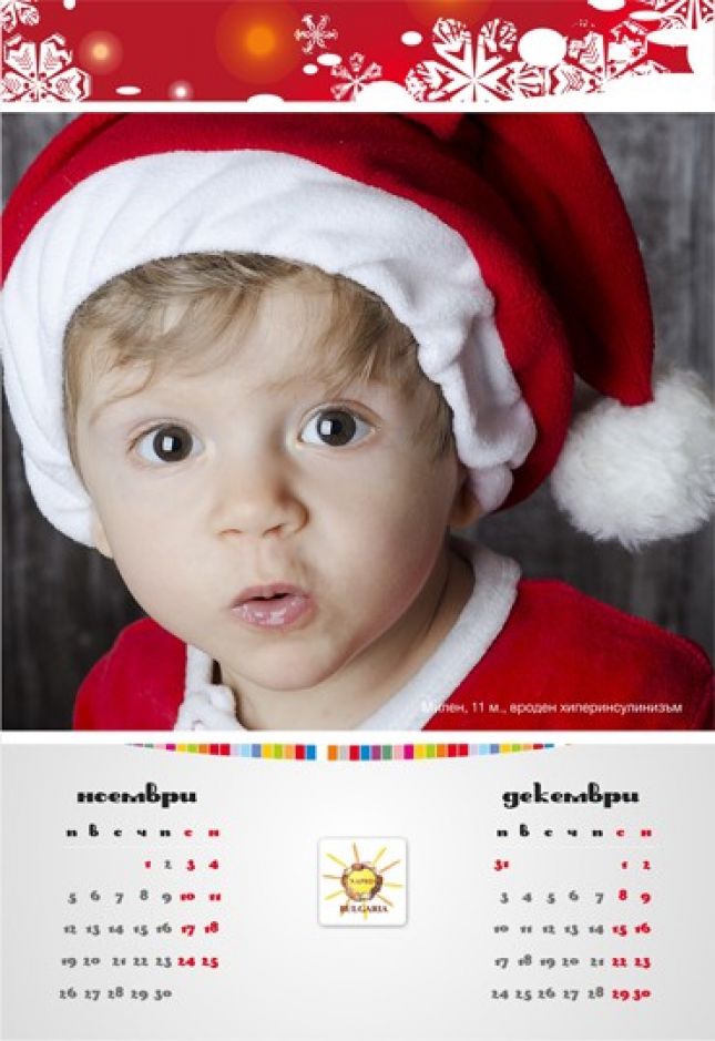 Затова и техните погледи, изпълнени с надежда, са насочени към новия благотворителен календар, заснет от фотографката Яна Пенева, пълен с усмивките на малчугани, страдащи от редки заболявания. Всеки, който желае да помогне, може да си купи календар с усмивки.